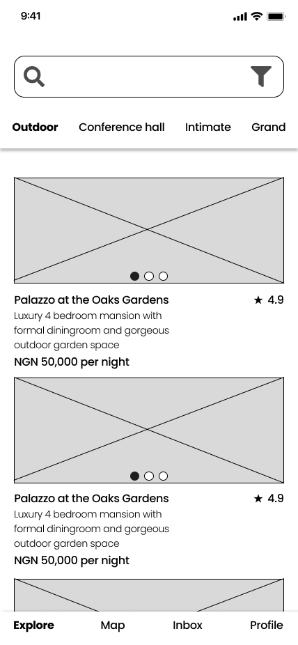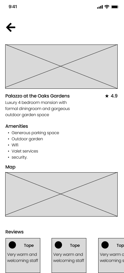 The vision was simple: create a seamless platform that empowers users to discover, explore, and book venues effortlessly. I leveraged AI wireframing tools to rapidly explore various layout variations before narrowing to 3 concepts for user testing. I started with low-fidelity sketches that were then translated into wireframes using Figma.