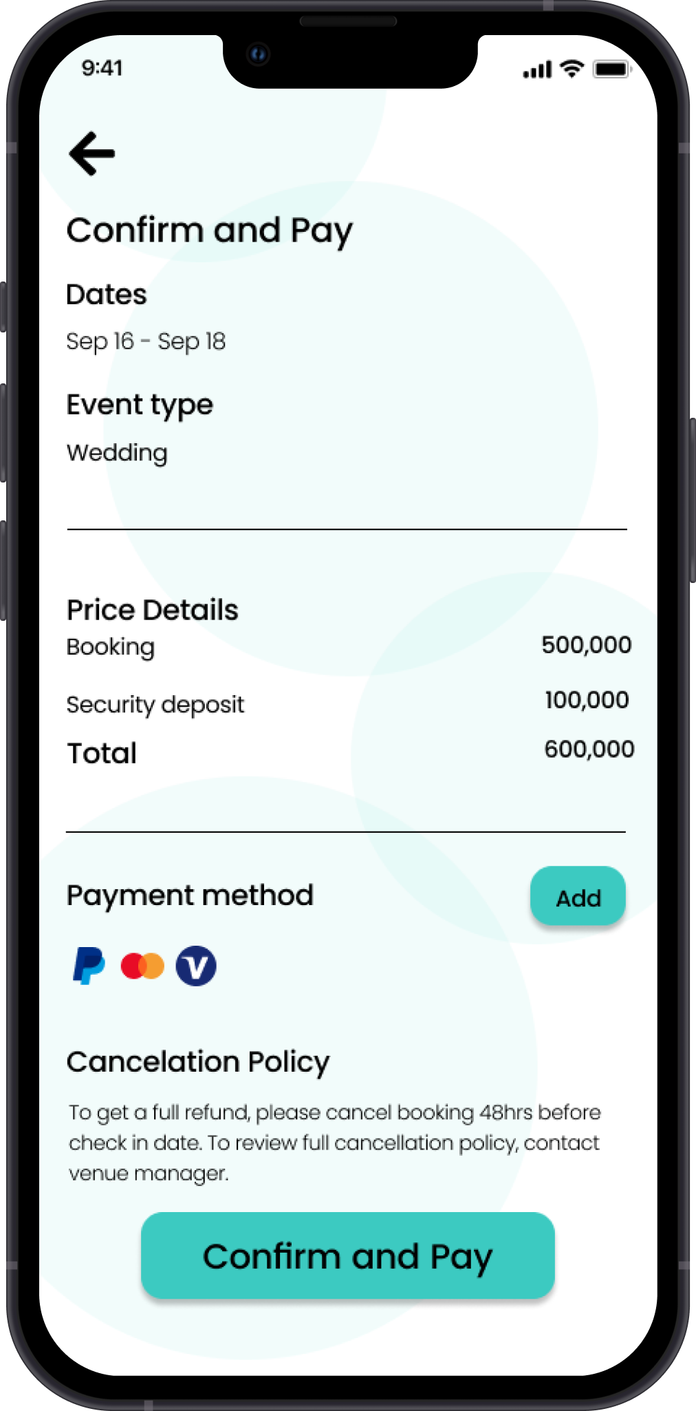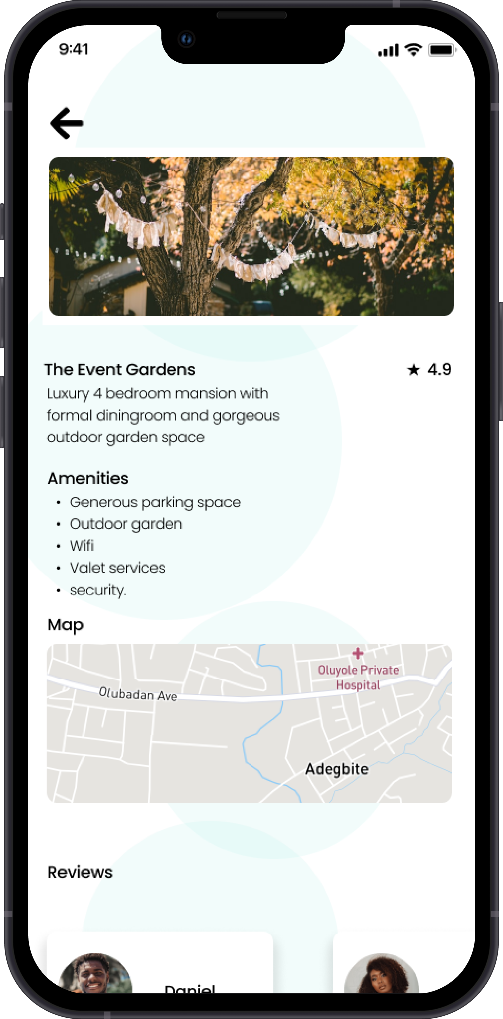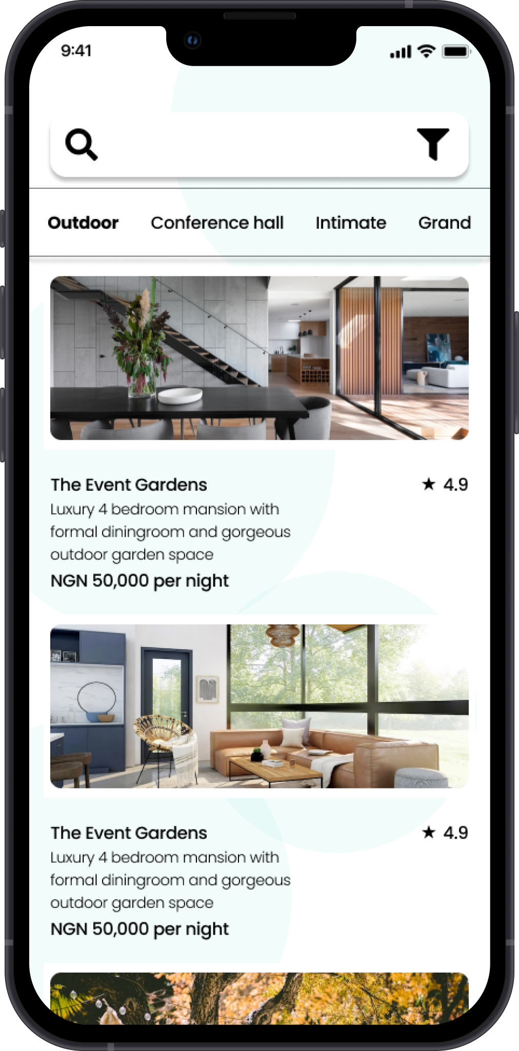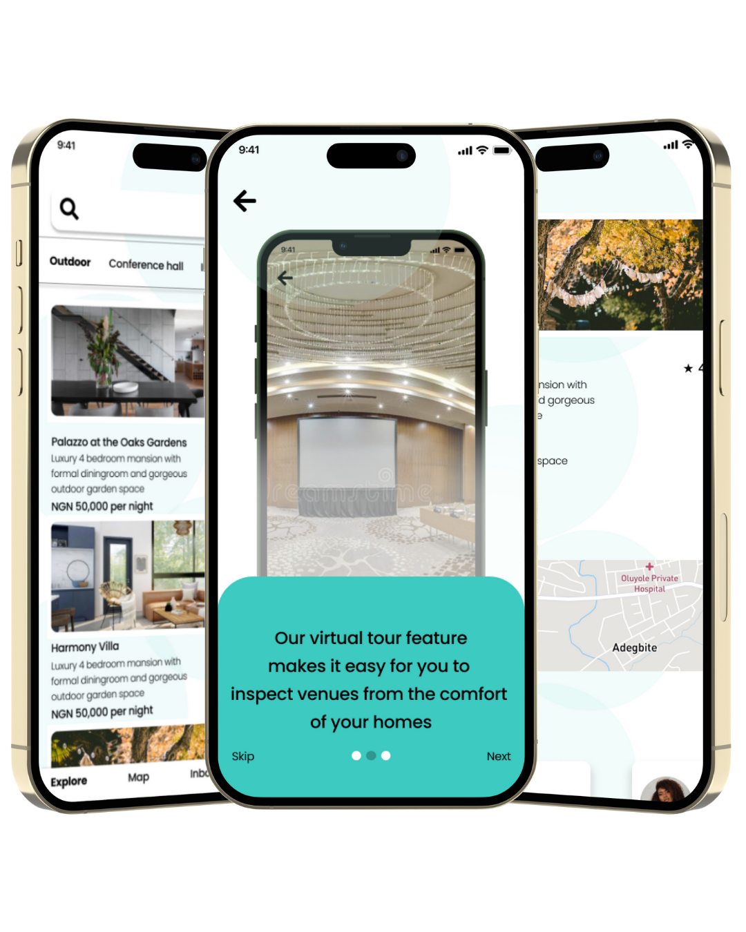 "You're planning an engagement party for 300 guests under NGN10,000,000. Use the app to find a suitable venue, take a virtual tour, and start a booking request."